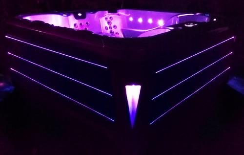 Unsere Whirlpools sind mit einem modernen, energieeffizienten RGB-LED-Licht ausgestattet. Unterwasser-LEDs, ein dreifaches Lichtband an der Außenverkleidung und der stimmungsvolle Farbwechsel schaffen eine luxuriöse und entspannende Atmosphäre für Ihre Wellnessmomente – tagsüber und nachts.